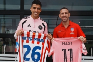 本周末馬競之家在邁阿密舉辦活動,馬競代表團(tuán)前往邁阿密國際訓(xùn)練中心,探班曾效力馬競的蘇亞雷斯,馬克西·羅德里格斯與蘇亞雷斯互贈球衣并合影。
