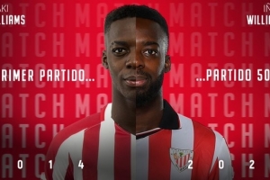 體育資訊3月14日訊 畢爾巴鄂競技官推發(fā)文,球隊青訓(xùn)前鋒伊納基·威廉姆斯迎來其畢巴生涯500場里程碑。