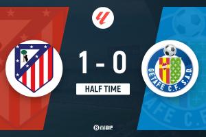 上半場補(bǔ)時2分鐘,馬競1-0赫塔菲。