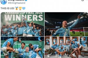 哈蘭德也在社媒曬出與眾位隊(duì)友開心慶祝合影,配文寫道:“這就是我們!”