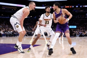 太陽(yáng)本賽季至今戰(zhàn)績(jī)?yōu)?0勝32負(fù),場(chǎng)均得112.2分,場(chǎng)均失111.2分。上場(chǎng)比賽,太陽(yáng)主場(chǎng)120-98大勝猛龍,球隊(duì)結(jié)束5連敗。杰倫·格林20分3籃板7助攻,布克25分3籃板6助攻,吉萊斯皮16分4籃板3助攻,喬丹·古德溫14分7籃板。本賽季太陽(yáng)主場(chǎng)戰(zhàn)績(jī)23勝14負(fù)。進(jìn)入3月份以來(lái),太陽(yáng)6勝6負(fù)。本場(chǎng)羅伊斯·奧尼爾大概率出戰(zhàn),格雷森·阿倫出戰(zhàn)成疑,狄龍·布魯克斯、馬克·威廉姆斯、阿米爾·科菲、海伍德·海史密斯缺席比賽。太陽(yáng)目前的排名比較微妙,最后10場(chǎng)常規(guī)賽球隊(duì)無(wú)疑會(huì)全力沖擊前6,力爭(zhēng)直接晉級(jí)季后賽。近期缺少了多名主力的太陽(yáng)比較依賴杰倫·格林和布克雙子星的發(fā)揮。往績(jī)看,太陽(yáng)面對(duì)掘金已經(jīng)4連敗。
