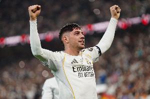 體育資訊3月15日訊 西甲第28輪比賽,皇馬在伯納烏迎戰(zhàn)埃爾切。本場(chǎng)比賽上半場(chǎng),主隊(duì)以2-0的比分領(lǐng)先,巴爾韋德打進(jìn)第2球。