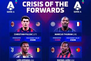 意甲最新身價前十(單位:歐元)↓