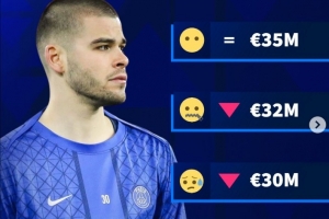 體育資訊3月25日訊 德國轉(zhuǎn)會(huì)市場(chǎng)曬照,預(yù)熱巴黎門將舍瓦利耶的身價(jià),四種方案的三種都是身價(jià)下調(diào)。