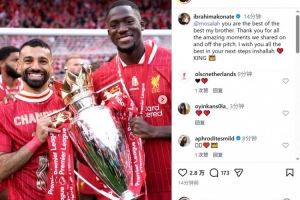 科納特曬出與薩拉赫的捧杯合照,配文:“你是最佳中的最佳,我的兄弟。感謝你在場上場下與我共同度過的所有美妙時刻,祝你在未來的征程中一切順利?!?/p>