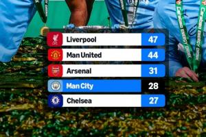 1、利物浦,47冠