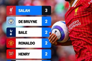 薩拉赫共拿到3次PFA年度最佳球員獎(jiǎng)項(xiàng),為英超歷史最多。在英超歷史上,有多名球星都兩次拿到PFA年度最佳球員獎(jiǎng)項(xiàng),他們分別是德布勞內(nèi)(曼城)、貝爾(熱刺)、C羅(曼聯(lián))、亨利(阿森納)、希勒(布萊克本/紐卡)以及馬克·休斯(曼聯(lián))。