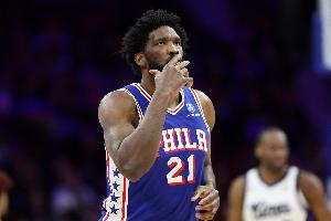 據(jù)統(tǒng)計(jì),76人在恩比德過去10場(chǎng)出戰(zhàn)的比賽8勝2負(fù),他場(chǎng)均砍下32.4分,三項(xiàng)命中率54/50/85%。