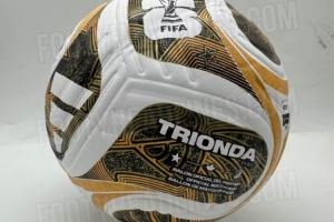 體育資訊3月26日訊 足球裝備網(wǎng)站footyheadline曝光世界杯決賽用球,該款足球以白色為底,搭配黑色和金色。