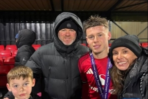 現(xiàn)年16歲的凱·魯尼目前效力曼聯(lián)U16隊(duì),他幫助球隊(duì)在英超聯(lián)賽盾杯決賽中2-0戰(zhàn)勝伯恩利奪冠,魯尼與妻子科琳現(xiàn)場(chǎng)觀戰(zhàn)。