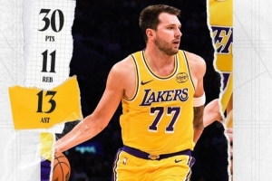 賽后,湖人官方曬出東契奇的數(shù)據(jù)海報(bào),配文寫道:“三雙,外加絕殺!東契奇,今晚屬于你!??”