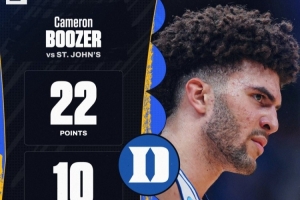 體育資訊3月28日訊 NCAA瘋?cè)鹈?6強(qiáng)賽,杜克大學(xué)80-75逆轉(zhuǎn)戰(zhàn)勝圣約翰大學(xué)。