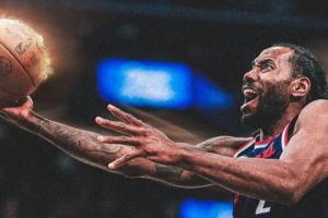 比賽第末節(jié),快船當(dāng)家球星科懷·倫納德中距離干拔命中砍下本場第21分!