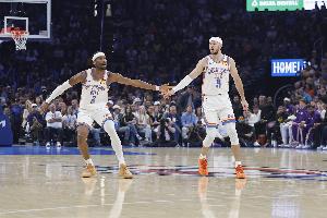 記者問:“你在比賽末段提到了那如過山車般的勢頭變化,亞歷山大投進了那記球,然后被裁判吹掉。談談球隊的反應吧。你經(jīng)歷過很多大場面,球隊是如何迅速調(diào)整狀態(tài)并準備好接下來的比賽以及可能的加時賽的?”