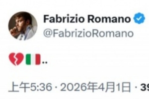 賽后,意大利名記羅馬諾發(fā)布社交媒體,心碎的表情配上意大利國旗。