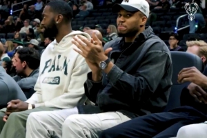 在字母弟罰球得分時,字母哥在場邊大喊道:“嘿,伙計,我現在就能夠退役啦。我已經做到了一切,伙計?!?/p>