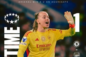 女足歐冠1/4決賽首回合比賽,阿森納女足主場3-1戰(zhàn)勝切爾西女足,次回合切爾西女足憑借尼斯肯在補時階段的進球1-0取勝,但阿森納女足仍以3-2的總比分晉級半決賽。